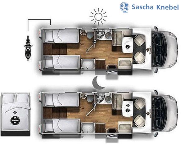 * 2 Leselampen jeweils im Schlafbereich Heckbett inkl. USB Ladefunktion